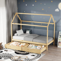 Παιδικό κρεβάτι Mellin τ. Montessori με 2 συρτάρια pakoworld ξύλο πεύκου σε φυσική απόχρωση 90x190εκ