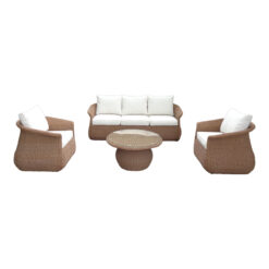 Σαλόνι κήπου Tropicana pakoworld 4τεμ pe rattan σε καφέ απόχρωση - ύφασμα μπεζ