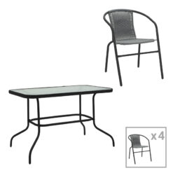 Τραπεζαρία Valor-Obbi pakoworld σετ 5τεμ μέταλλο μαύρο-γυαλί-pe γκρι 110x60x70εκ