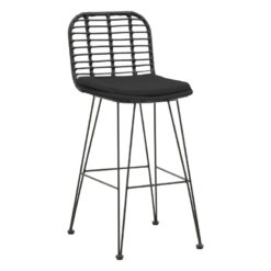Σκαμπό μπαρ Naoki pakoworld με μαξιλάρι pe μαύρο-μέταλλο μαύρο πόδι 46x56x110εκ