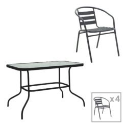 Τραπεζαρία Valor-Tade σετ 5τεμ pakoworld μέταλλο μαύρο-γυαλί 110x60x70εκ