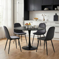 Τραπεζαρία Bella-Balou pakoworld σετ 5τεμ MDF μαύρο-βελούδο ανθρακί Φ120x73εκ