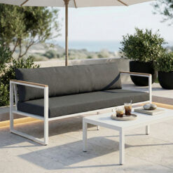 Καναπές τριθέσιος Aurelio pakoworld μεταλλικός σε λευκή -μαξιλάρια σε ανθρακί απόχρωση 192x74x63εκ