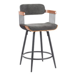 Σκαμπό μπαρ Cameo pakoworld περιστρεφόμενο μέταλλο μαύρο-καρυδί ξύλο-ανθρακί ύφασμα 53x50x93εκ