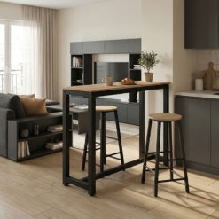 Σετ τραπέζι μπαρ Marle pakoworld 3τμχ sonoma-μαύρο πόδι 120x40x100εκ