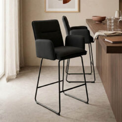 Σκαμπό μπαρ Essential pakoworld ύφασμα μαύρο-πόδι μαύρο μεταλλικό 57x64.5x107εκ