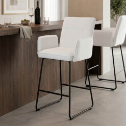 Σκαμπό μπαρ Essential pakoworld ύφασμα λευκό-πόδι μαύρο μεταλλικό 57x64.5x107εκ