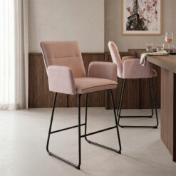 Σκαμπό μπαρ Essential pakoworld ύφασμα γκρι-πόδι μαύρο μεταλλικό 57x64.5x107εκ