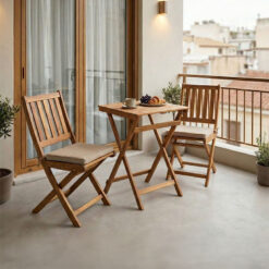 Τραπεζαρία Elijie-Lazio pakoworld σετ 3τεμ πτυσσόμενο φυσικό μασίφ ξύλο ακακίας 50x50x70εκ