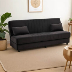 Καναπές-κρεβάτι με αποθηκευτικό χώρο τριθέσιος Romina pakoworld μαύρο ύφασμα 190x85x90εκ