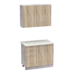 Σύνθεση κουζίνας Festa I pakoworld μελαμίνη σε sonoma απόχρωση και πάγκο σε ανοιχτό γκρι 100x60x85εκ