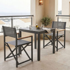 Τραπεζαρία Kliton-Mabu σετ 3τεμ pakoworld αλουμίνιο σε ανθρακί απόχρωση 80x80x74εκ
