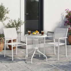 Τραπεζαρία Valor-Confidence B σετ 3τεμ pakoworld μέταλλο σε λευκή απόχρωση Φ60x70εκ