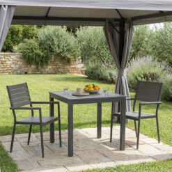 Τραπεζαρία Uplift-Kliton σετ 3τεμ pakoworld ανθρακί αλουμίνιο και plywood σε γκρι απόχρωση 80x80x74εκ