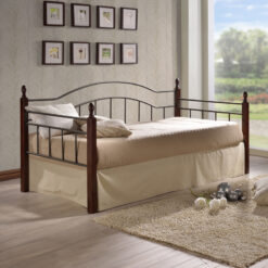 Καναπές-κρεβάτι Nika pakoworld ξύλο σε καρυδί απόχρωση-μαύρο μέταλλο 90x190εκ