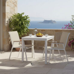 Τραπεζαρία Manka-Julita pakoworld σετ 3τεμ σε λευκή απόχρωση 80x80x77εκ