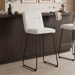 Σκαμπό μπαρ Essential pakoworld ύφασμα λευκό-πόδι μάυρο μεταλλικό 53x64.5x107εκ