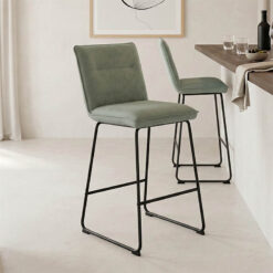 Σκαμπό μπαρ Essential pakoworld ύφασμα χακί-πόδι μάυρο μεταλλικό 53x64.5x107εκ