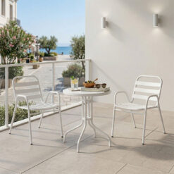 Τραπεζαρία Watson-Sussie pakoworld σετ 3τεμ μέταλλο λευκό-γυαλί Φ60x70εκ