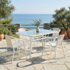 Τραπεζαρία Obbi-Ensure pakoworld 5τεμ μέταλλο-γυαλί σε λευκή απόχρωση 120x70x70εκ