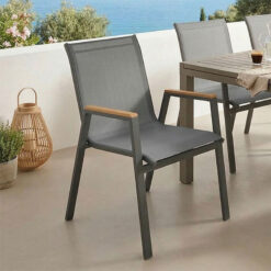 Πολυθρόνα Azelie pakoworld στοιβαζόμενη textilene ανθρακί-πόδι αλουμινίου ανθρακί-plywood μπράτσο 56x75x88εκ