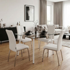 Τραπεζαρία με Καρέκλες Ariadne Λευκό και Τραπέζι Titta γυαλί 120x70x75εκ Σετ 5τεμ