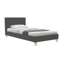 Κρεβάτι Nevil pakoworld ύφασμα ανθρακί με ξύλινο πόδι σε φυσική απόχρωση 90x190εκ