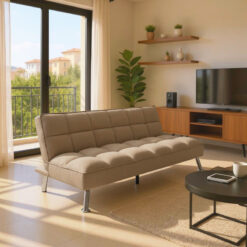 Καναπές-κρεβάτι Rebel pakoworld 3θέσιος με ύφασμα μπεζ-καφέ 189x92x82εκ