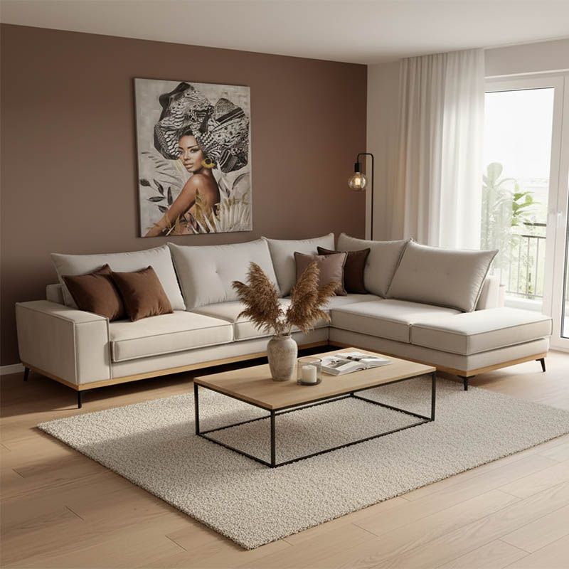 Γωνιακός καναπές αριστερή γωνία Luxury II pakoworld ύφασμα cream-mocha 290x235x95εκ