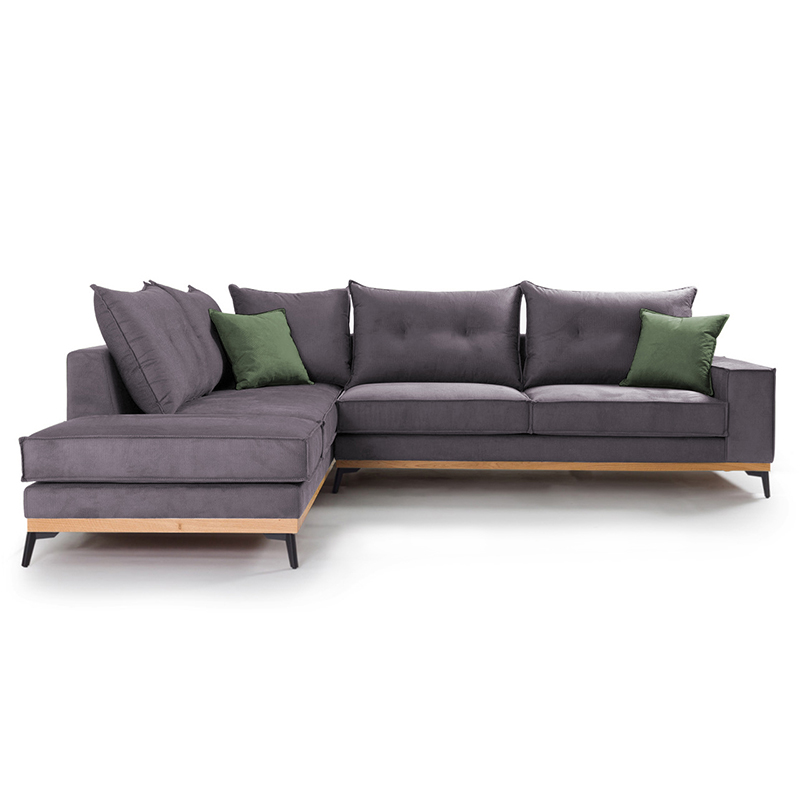 Γωνιακός καναπές δεξιά γωνία Luxury II pakoworld ύφασμα ανθρακί-κυπαρισσί 290x235x95εκ