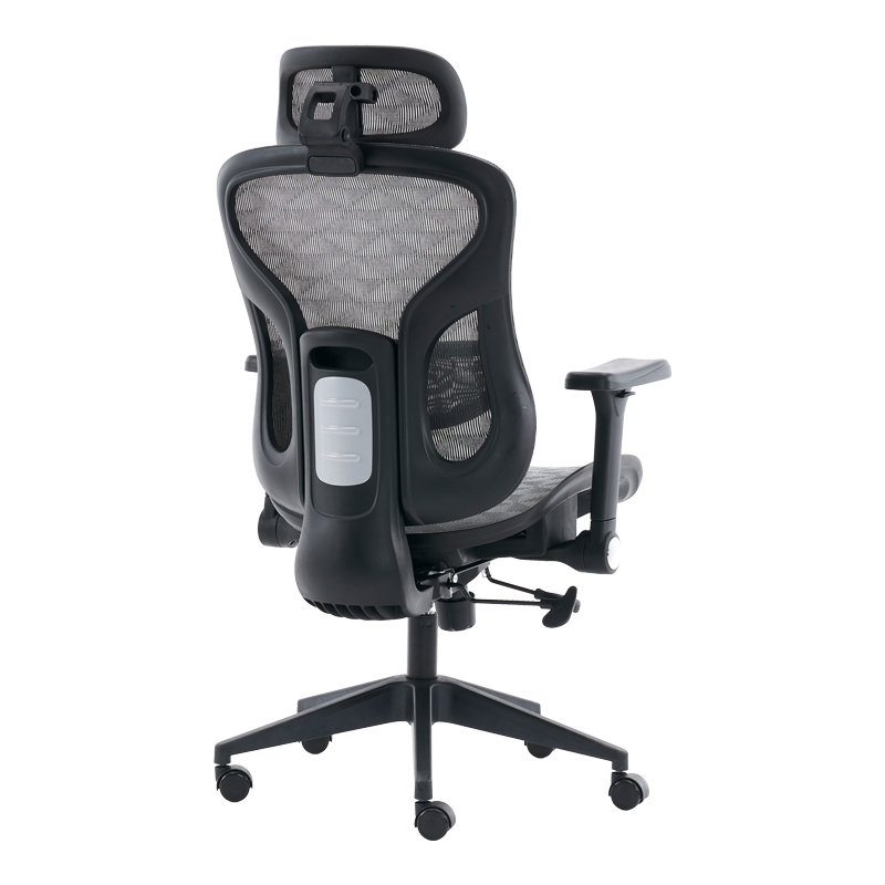 - Η πλάτη είναι ρυθμιζόμενη καθ’ ύψος επιτρέποντας την τέλεια ευθυγράμμιση της οσφυϊκής στήριξης με το σώμα του χρήστη.