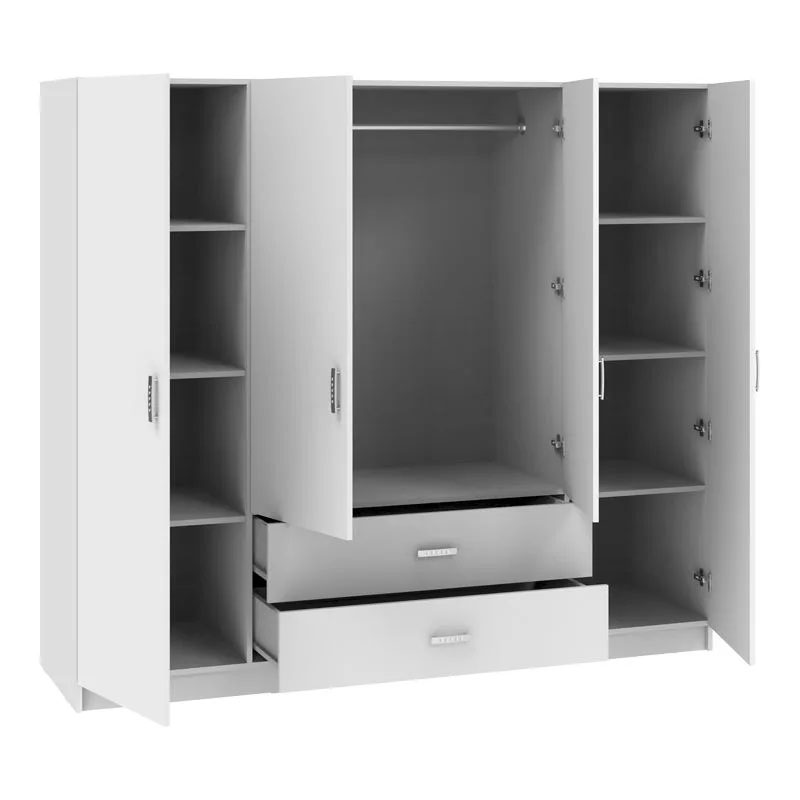 - Το εσωτερικό περιλαμβάνει μεταλλική βέργα για κρέμασμα ρούχων και πολλαπλά ράφια.