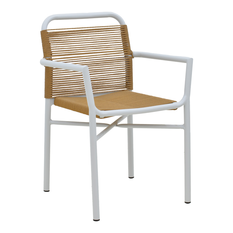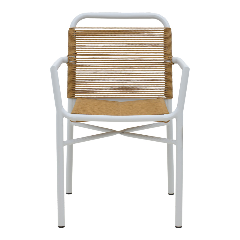 Πολυθρόνα αλουμινίου Clutch pakoworld στοιβαζόμενη λευκός σκελετός-φυσικό rattan 55x56x80εκ