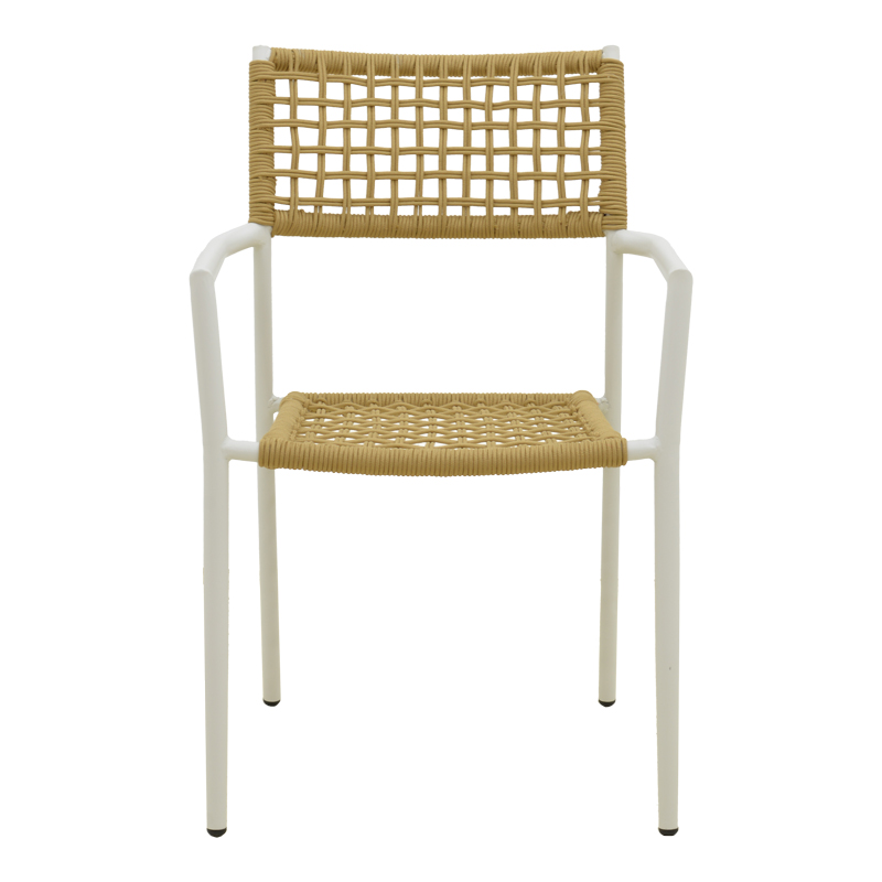 Πολυθρόνα Castal pakoworld στοιβαζόμενη μέταλλο σε λευκή -pe σχοινί σε φυσική απόχρωση 53x59x84εκ