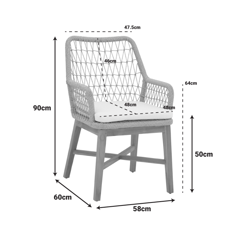 Πολυθρόνα Elaiza pakoworl teak ξύλο και pe σχοινί σε φυσική-μπεζ απόχρωση με μαξιλάρι 58x60x90εκ