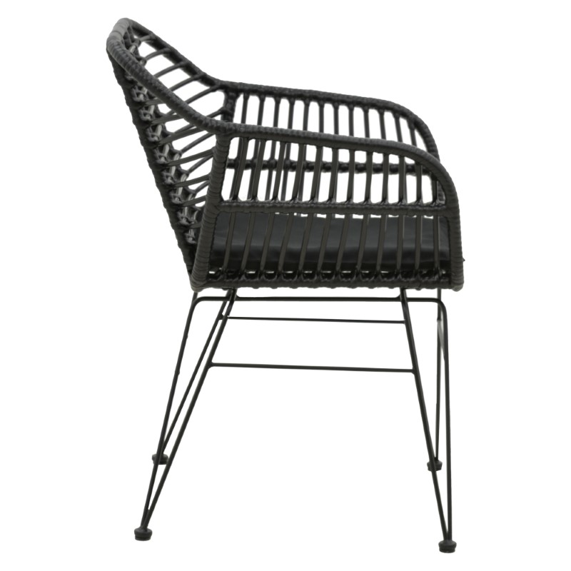 Πολυθρόνα κήπου Naoki pakoworld με μαξιλάρι pe μαύρο-μέταλλο μαύρο πόδι 55x58x79εκ