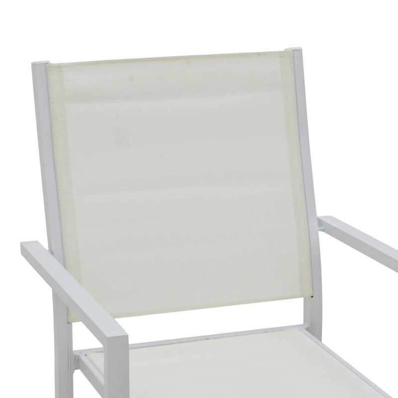 - Textilene: Το textilene είναι ένα εξαιρετικά ανθεκτικό υλικό που χρησιμοποιείται ευρέως σε επίπλωση εξωτερικών χώρων και εξαρτήματα. Αποτελείται από πολυεστερικές ινώδεις που επικαλύπτονται με PVC (πολυβινυλοχλωρίδιο), δημιουργώντας ένα υλικό που συνδυάζει ανθεκτικότητα, αντοχή στις καιρικές συνθήκες και εύκαμπτη υφή. Το υλικό αυτό επιτρέπει τη διέλευση του αέρα, βοηθώντας στη διατήρηση μιας δροσερής αίσθησης κατά τη χρήση.