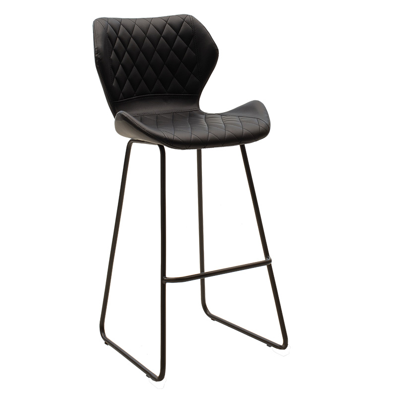 Σκαμπό μπαρ Theo pakoworld μεταλλικό μαύρο με PU μαύρο