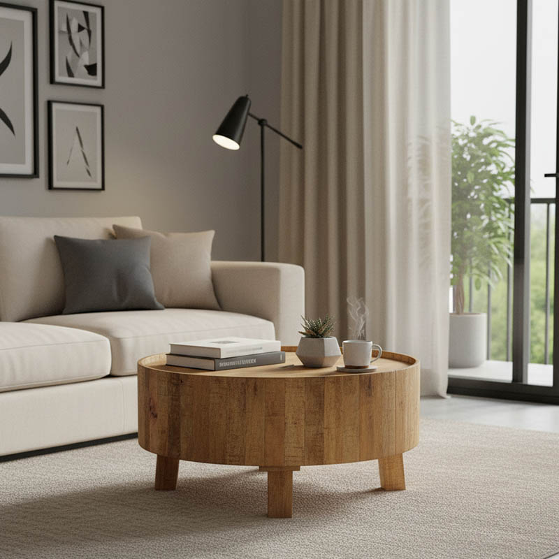 Τραπέζι σαλονιού με αποθηκευτικό χώρο Darian pakoworld μασίφ ξύλο mango φυσικό Φ90×45εκ