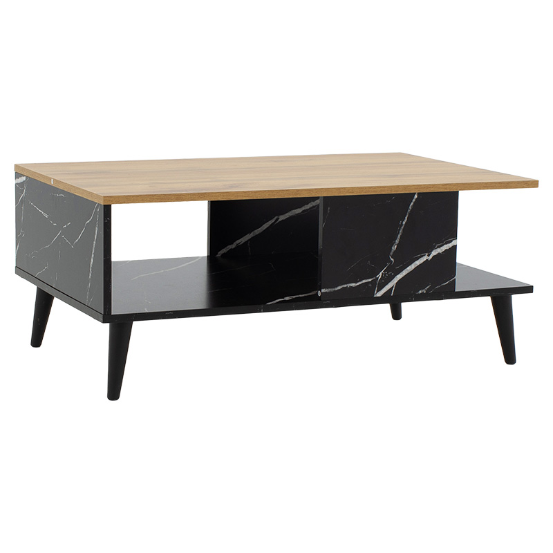 Τραπέζι σαλονιού Moses pakoworld χρώμα sonoma-μαύρο μαρμάρου 90x54x37.5εκ