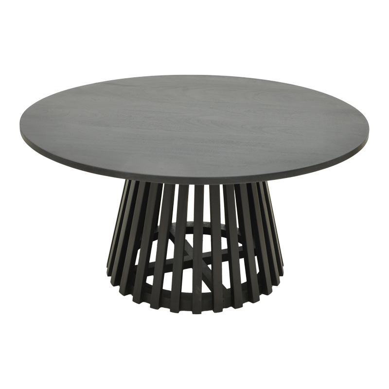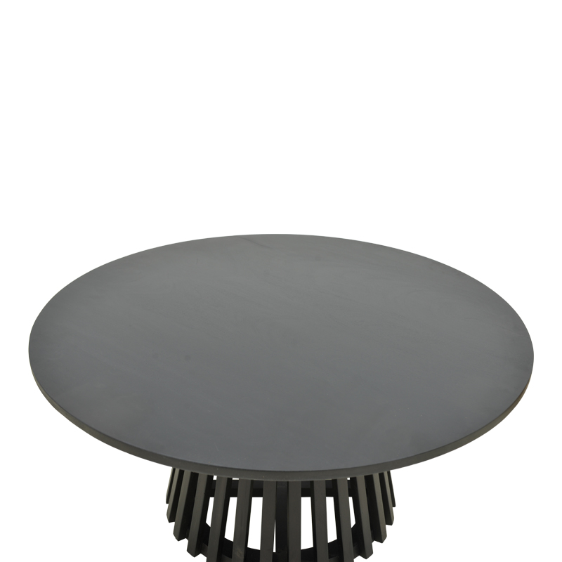 - Μοναδική Βάση “Ακτίνων”: Το πραγματικό highlight αυτού του τραπεζιού είναι η κωνική του βάση, σχηματισμένη από κάθετες ξύλινες “πλευρές” ή “ακτίνες”. Αυτό το ιδιαίτερο μοτίβο δημιουργεί ένα παιχνίδι φωτός και σκιάς, προσθέτοντας βάθος, υφή και μια μοντέρνα, αρχιτεκτονική πινελιά που το κάνει να ξεχωρίζει από οτιδήποτε άλλο.