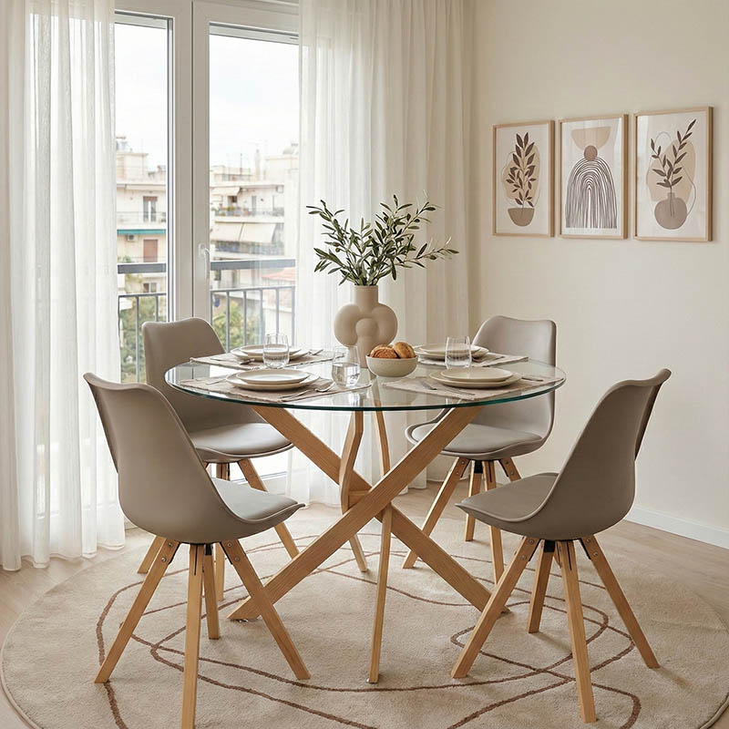Τραπέζι Antoro pakoworld γυαλί και μεταλλικά πόδια σε φυσική απόχρωση Φ80×75εκ
