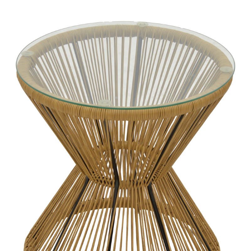 Τραπέζι Mabil pakoworld rattan φυσικό-γυαλί Φ50×55εκ
