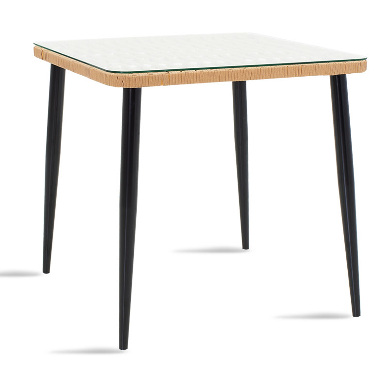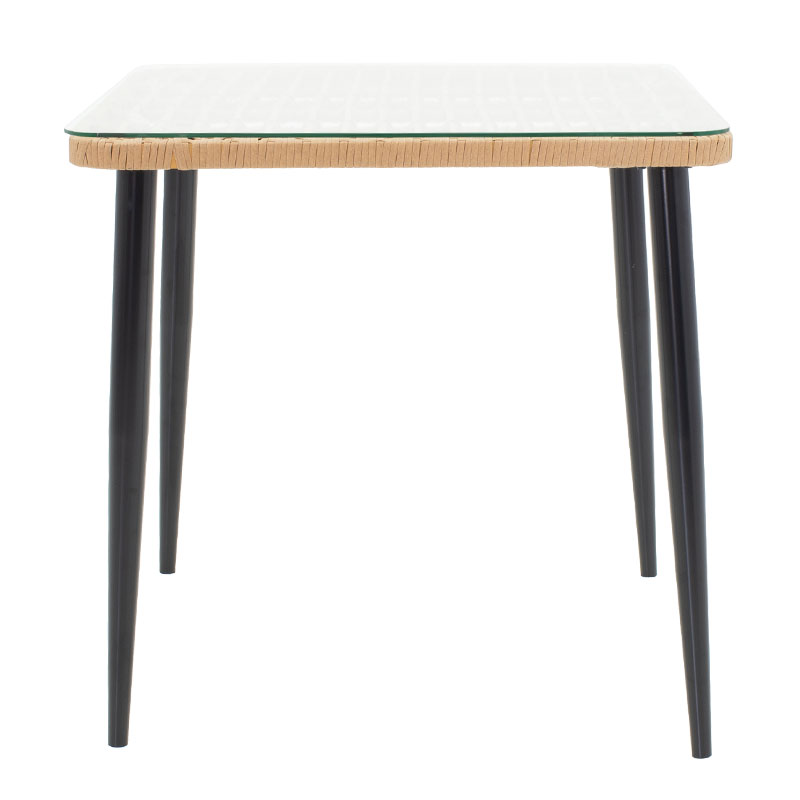 Τραπέζι Naoki pakoworld μέταλλο μαύρο-pe-φυσικό-γυαλί 80x80x78εκ