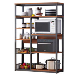 Ραφιέρα επιδαπέδια Leena pakoworld μέταλλο σκούρο καρυδί-μαύρο 80x30x142εκ