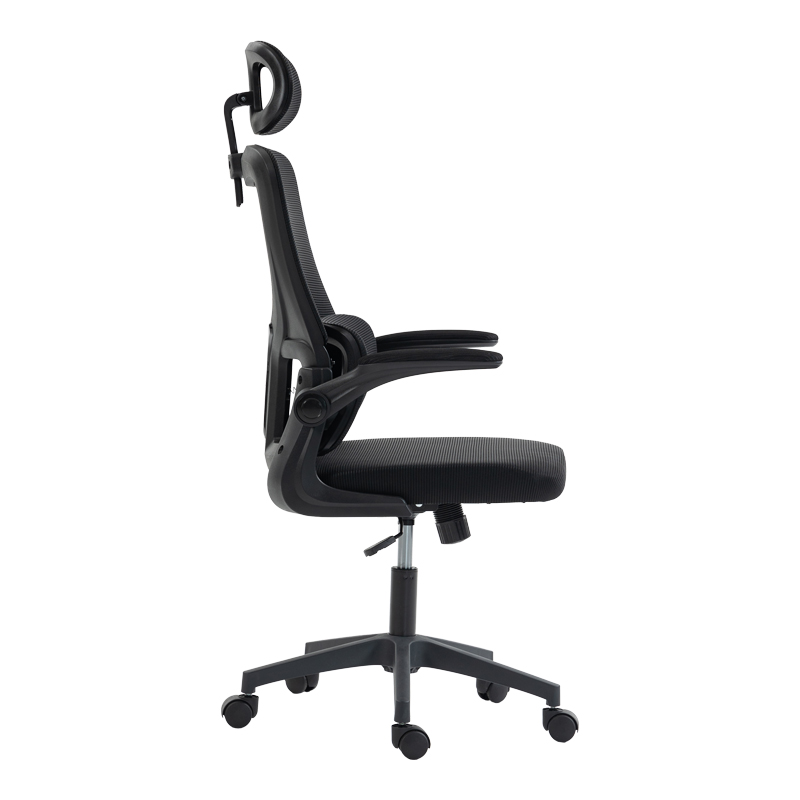- Αποθήκευση & Ευελιξία: Τα μπράτσα τύπου flip-up επιτρέπουν την αναδίπλωση τους κατά 90°, δίνοντας τη δυνατότητα να σπρώξετε την καρέκλα εντελώς κάτω από το γραφείο, εξοικονομώντας έτσι χώρο όταν δεν χρησιμοποιείται.