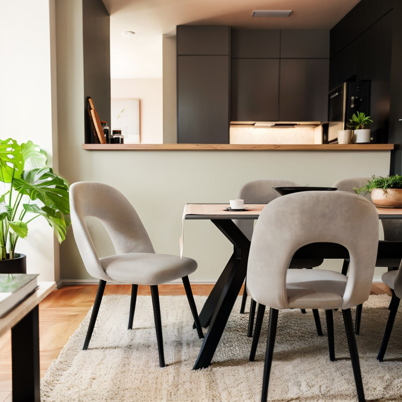 Καρέκλα Jonah pakoworld μεταλλική μαύρη βελουτέ γκρι