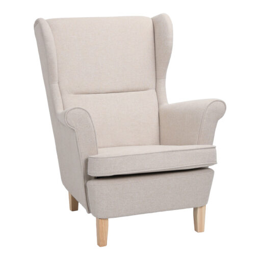 Πολυθρόνα – μπερζέρα Malei pakoworld ύφασμα σε κρεμ απόχρωση-ξύλινα πόδια 85x93x100εκ