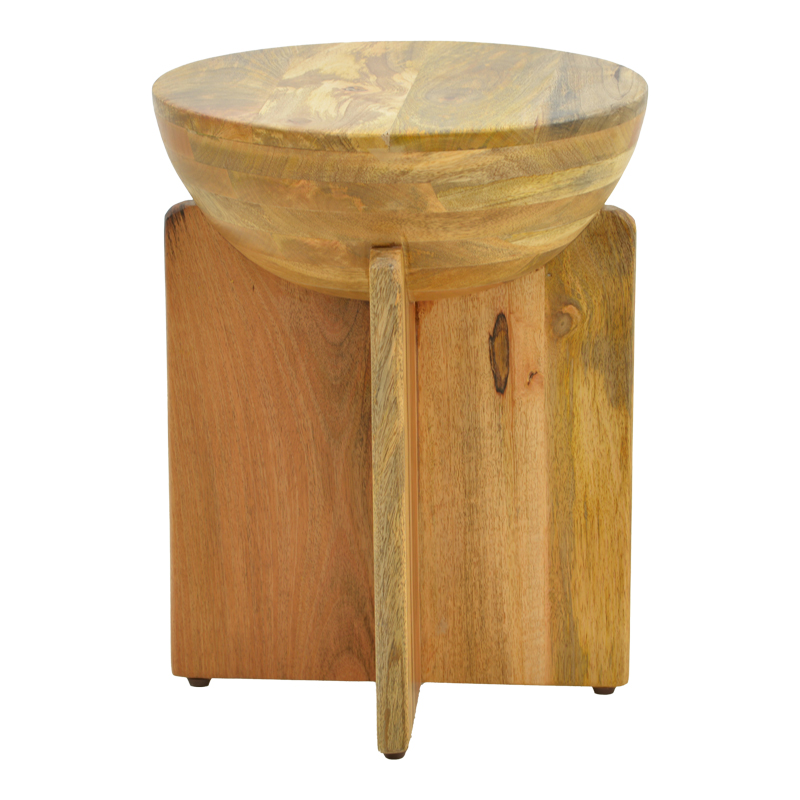 Ανανεώστε τον χώρο σας με το βοηθητικό τραπεζάκι Jenby. Αναδεικνύει την οργανική πλευρά του μασίφ ξύλου μάνγκο μέσα από μια εντυπωσιακή γεωμετρική αντίθεση. Το κύριο χαρακτηριστικό του είναι η ημισφαιρική επιφάνεια, η οποία μοιάζει να αιωρείται πάνω σε μια στιβαρή αρχιτεκτονική βάση.