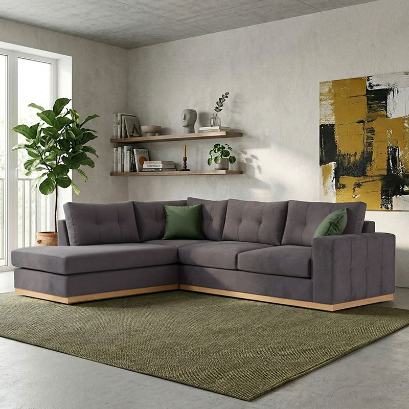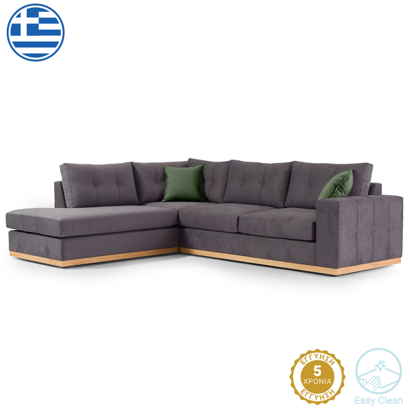 Γωνιακός καναπές δεξιά γωνία Boston pakoworld ύφασμα ανθρακί-κυπαρισσί 280x225x90εκ